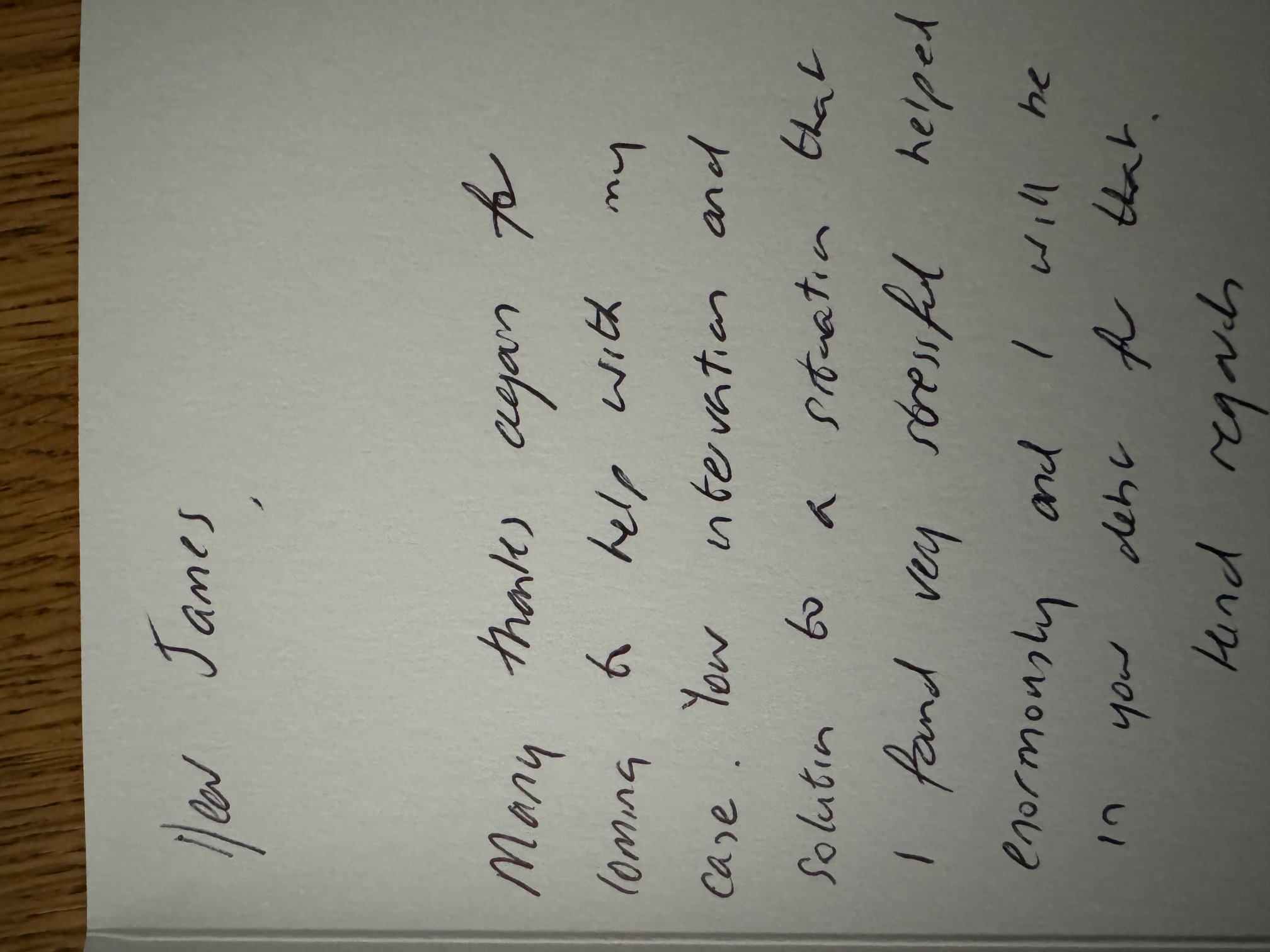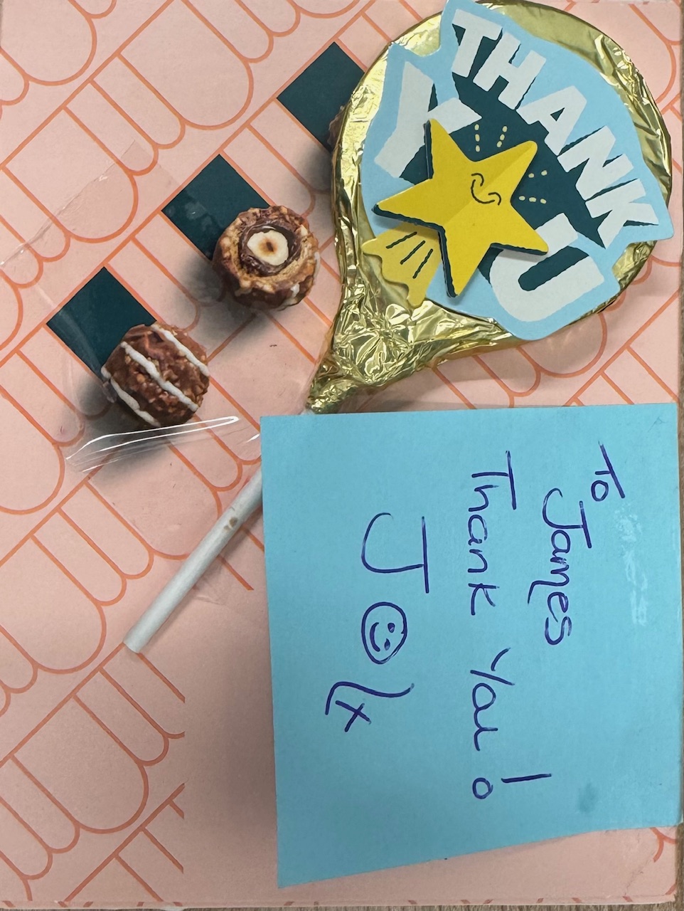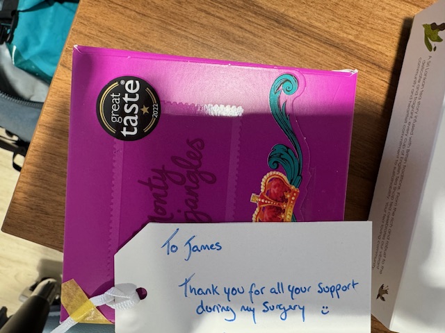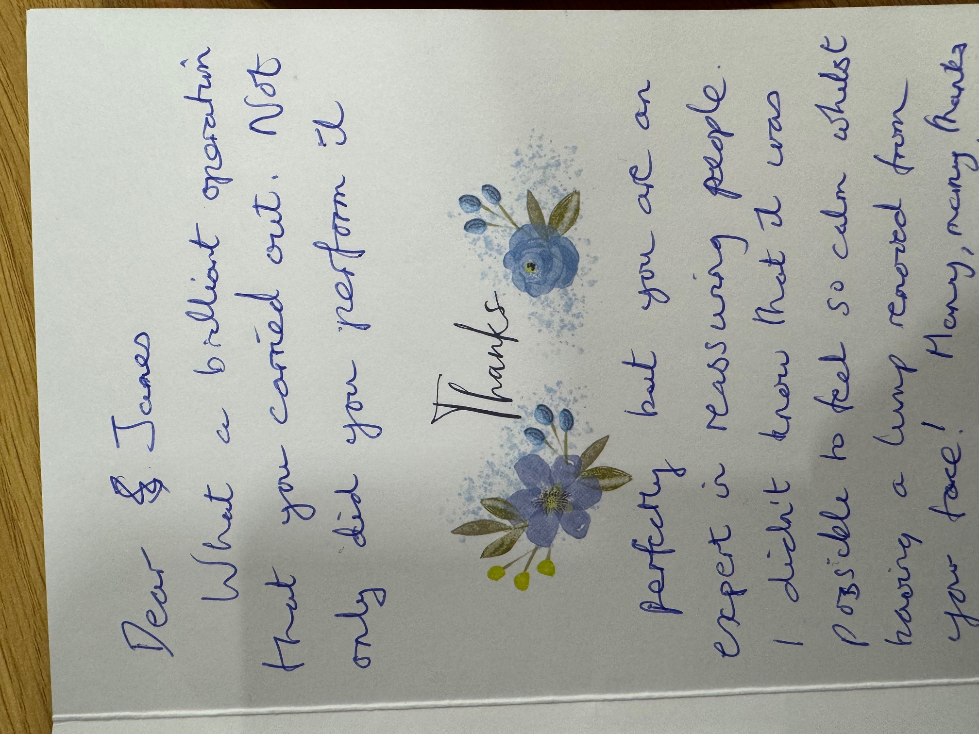 IXX left a thank you card with the nurse to pass on to James.