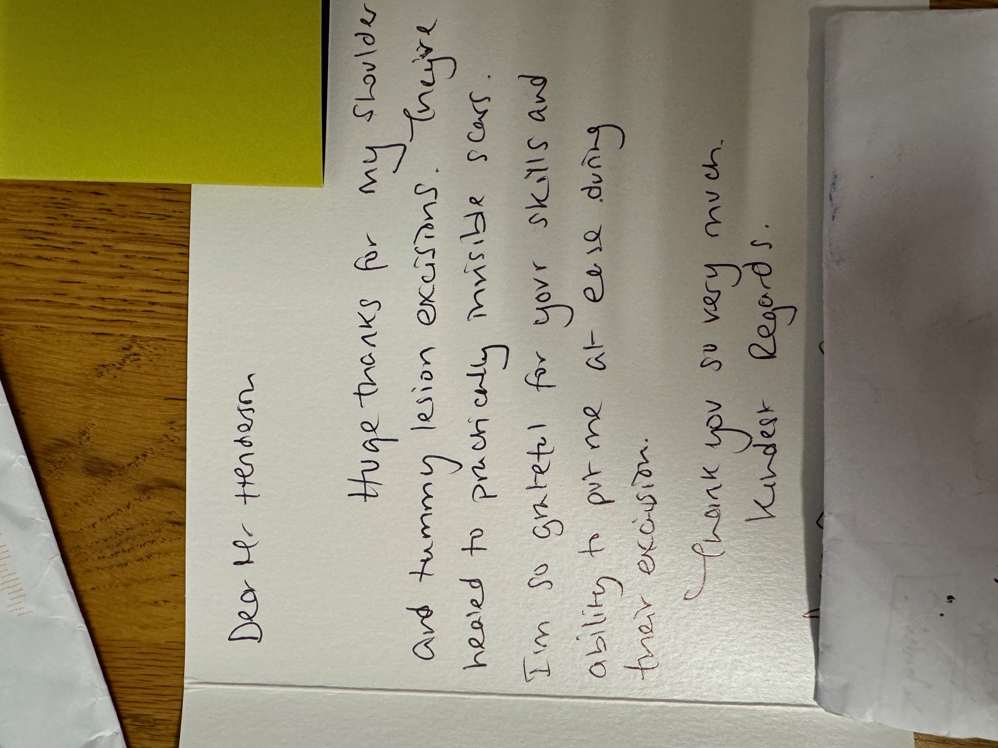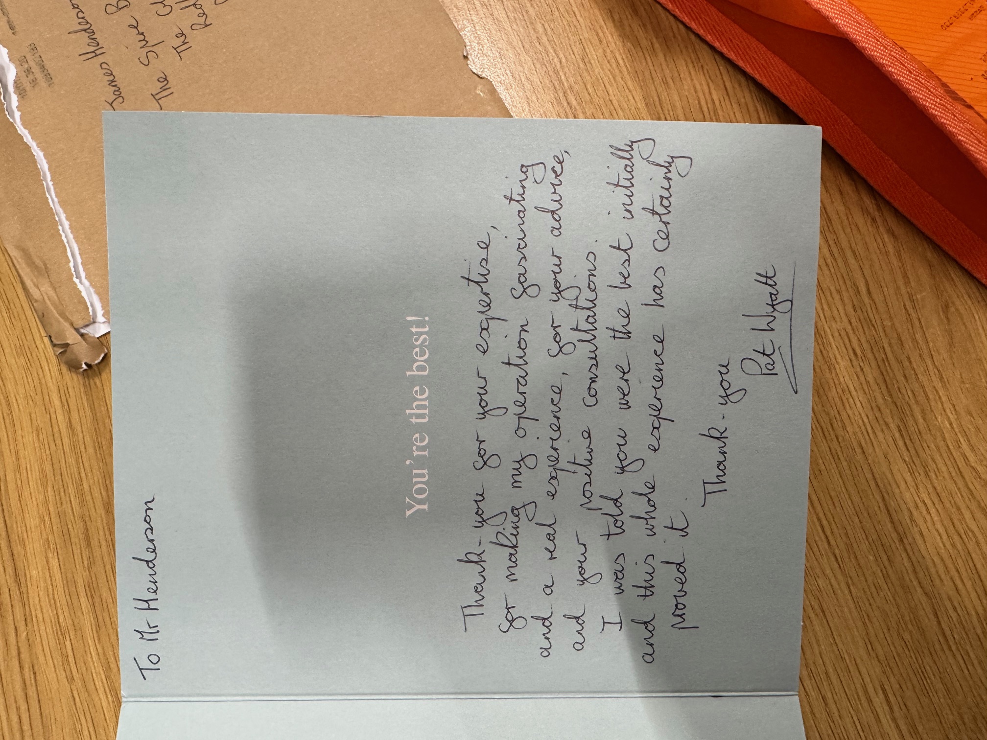 Could you please pass my best wishes to Mr Henderson and tell him I am thrilled with my minot op that he did and