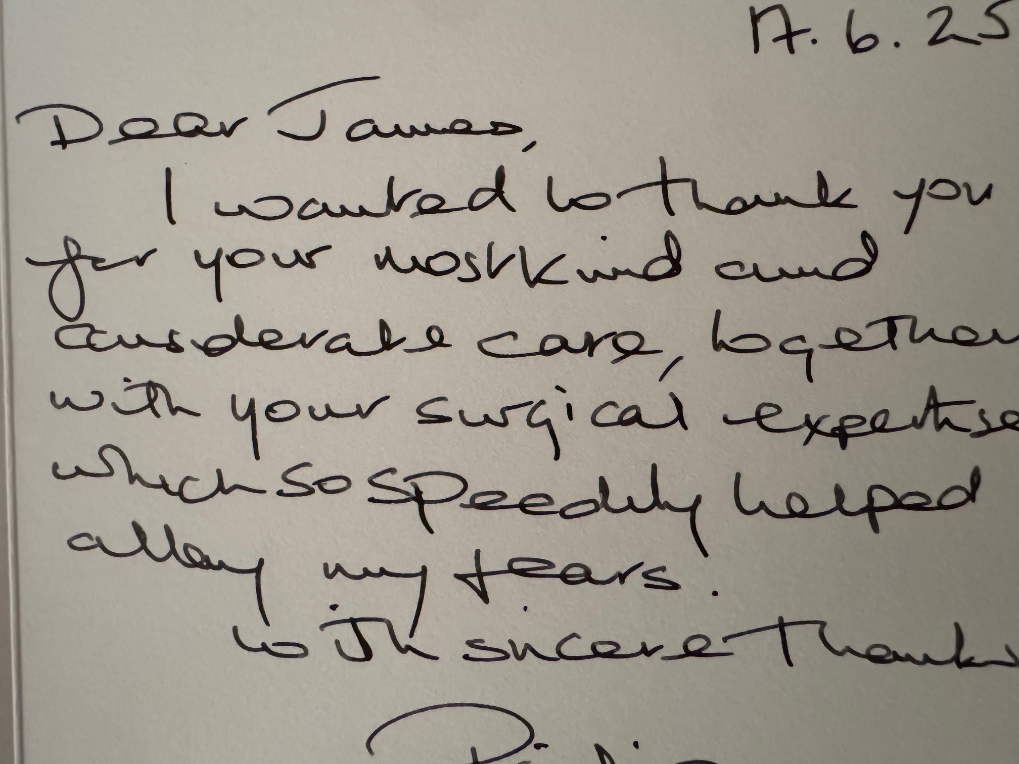 Thank you. Please pass on my thanks again to both Mr Henderson and Emma the lovely nurse . They really took care of me, put me at ease, and we had a nice chat throughout the procedure